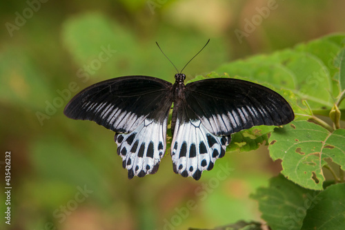 © Mana21, Obraz premium Blue mormon butterfly on leaf. seen in a India