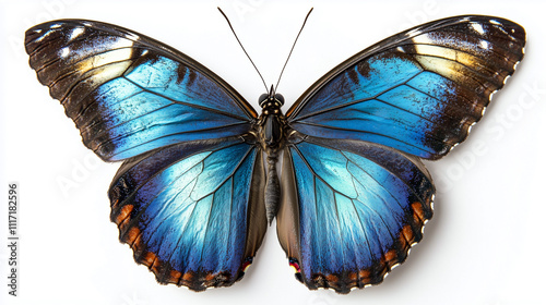 © Mando, Fototapeta premium Blue morpho butterfly isolated on white background