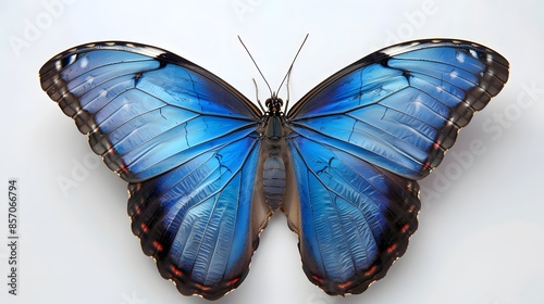 Fototapeta premium Blue morpho butterfly isolated on white background, studio shot.