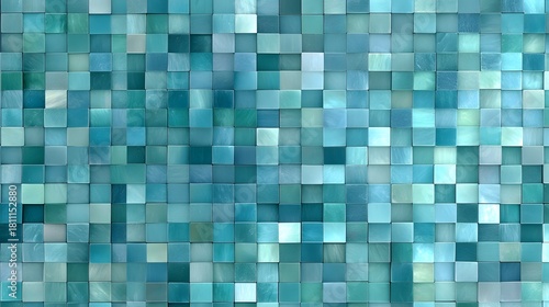 © Hanna, Fototapeta premium Blue mosaic tile background featuring shades of aqua and teal forming a textured geometric pattern