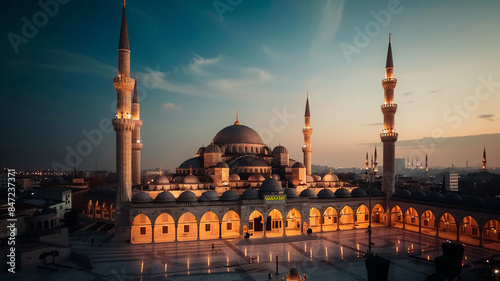 Naklejka premium Blue mosque illuminated at night, AI Generative.