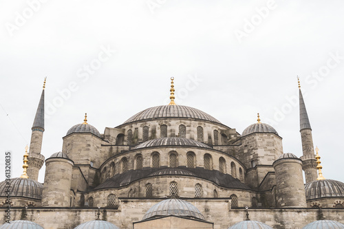 Naklejka premium Blue mosque in istanbul close up. Sultanahmet Mosque in gloomy weather. The...