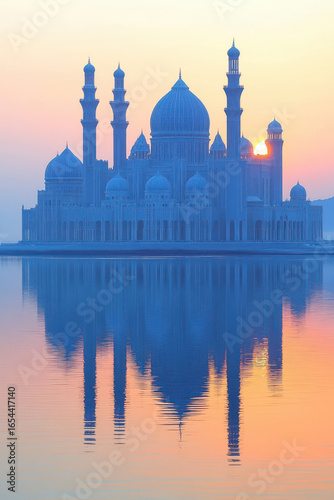 © Hvkk, Fototapeta premium Blue Mosque Reflected in the Water at Sunset