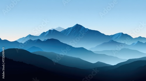 © Cre-AI-Tor , Fototapeta premium Blue Mountain Landscape with Atmospheric Layers and Horizon