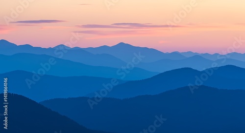 Obraz premium Blue Mountain Range with Sunset Sky