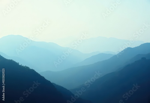 © NgoHong, Fototapeta premium Blue Mountains in Foggy Landscape .