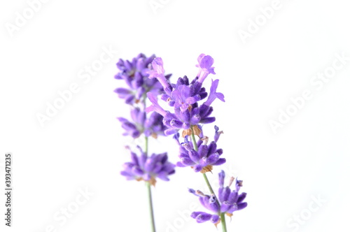 Naklejka premium Blue Mountian a violet lavender field in Hokkaido, Lavender flowers bundle