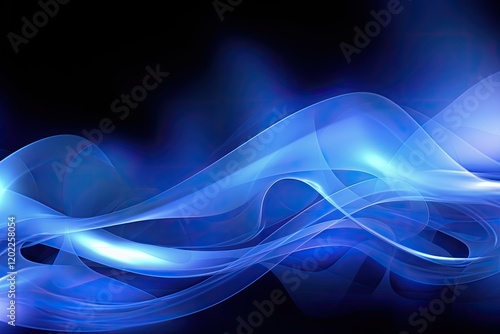 © Oleksandr, Naklejka premium Blue Music Background with Futuristic Abstract Curve Design and Texture Effect Illustration for Future-themed Projects