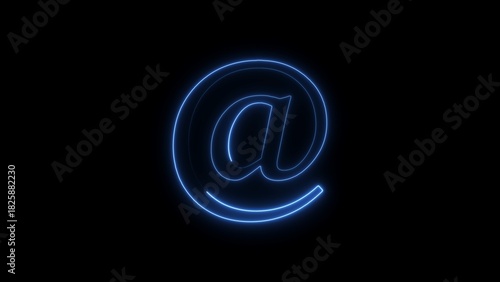 Obraz premium Blue Neon At Symbol Glowing Against Black Background at sign email symbol