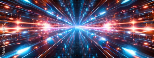 Obraz premium Blue neon circuit cyber tunnel background. Futuristic digital technology...