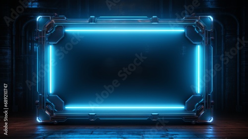 Obraz premium blue neon frame with dark background