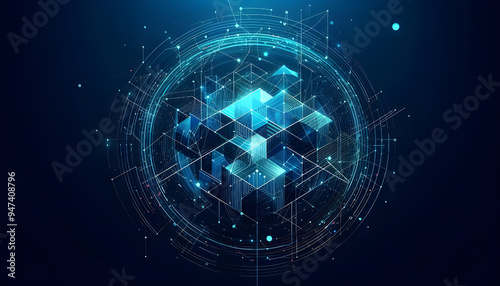 © Tanvir, Obraz premium Blue neon geometric abstract background