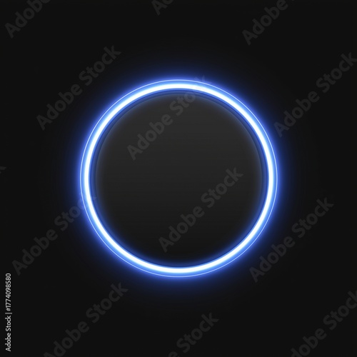 © Vivid_Vision, Obraz premium Blue neon glowing circle