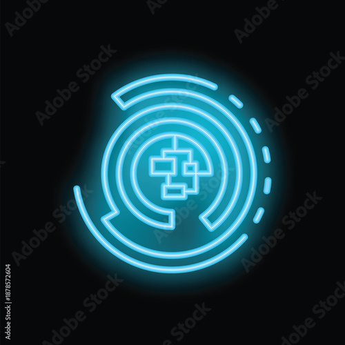 Fototapeta premium Blue neon icon representing a global network security system, emphasizing...