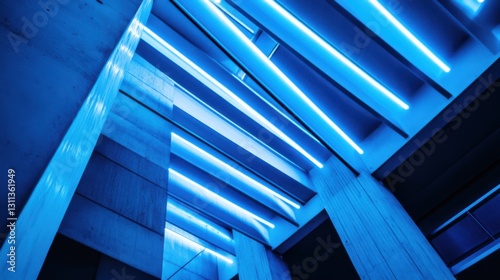 © Chayanin Wongpracha, Obraz premium blue neon lights architecture interior design