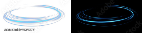 Naklejka premium Blue Neon Ring Glow Effect – Abstract Light Speed Lines, Glowing Circular Frame and Futuristic Motion Ellipse