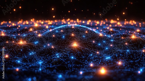 Naklejka premium Blue network with orange dots. Abstract, futuristic graphic background. Use...