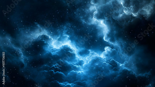 Fototapeta premium Blue Night Sky with Stars and Clouds.