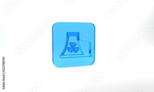 © Iryna, Fototapeta premium Blue Nuclear power plant icon isolated on grey background. Energy industrial concept. Glass square button. 3d illustration 3D render