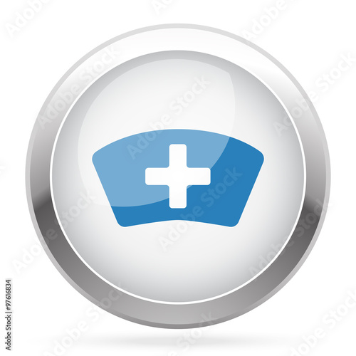 © Imagevector, Obraz premium Blue Nurse icon on white glossy chrome app button