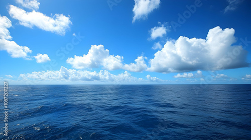 © Siasart Studio, Obraz premium Blue Ocean Background with White Clouds