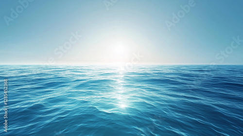 © kejardolar, Obraz premium Blue Ocean Blending with Serene Ethereal Clear Sky and Soft Lens Sun Light Flare