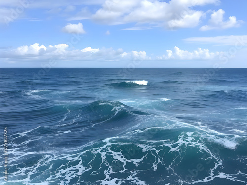 © JARVIS X, Fototapeta premium Blue ocean panorama with sun reflection, The vast open sea with clear sky, Ripple wave and calm sea with beautiful sunlight