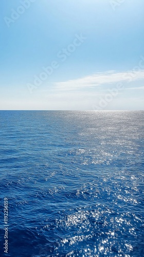 Fototapeta premium Blue ocean under clear sky with sunlight reflections