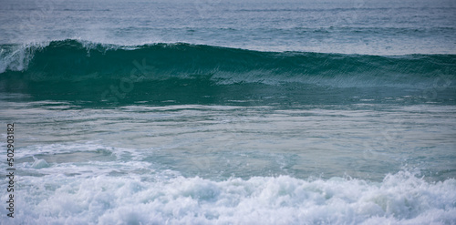 Fototapeta premium Blue ocean wave, ocean waves, natural background. Blue clean wavy sea water. Sea foam.