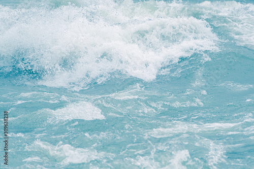 Fototapeta premium Blue ocean waves, tide. Swift current of river