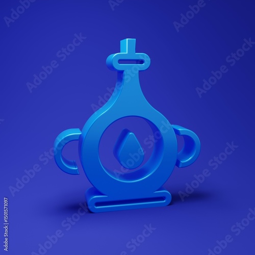 Obraz premium Blue Oil bottle icon isolated on blue background. Minimalism concept. 3D render illustration