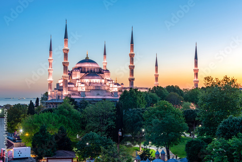 © Mistervlad, Fototapeta premium Blue or Sultan Ahmed mosque in center of Istanbul at sunset, Turkey