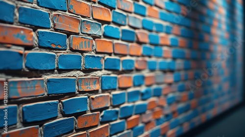 Naklejka premium Blue Orange Brick Wall - Dramatic Lighting - AI Photo
