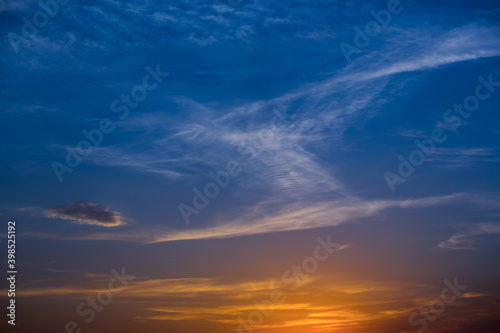Fototapeta premium Blue orange sunset with clouds.
