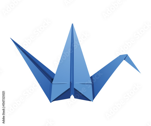 Fototapeta premium Blue Origami Crane with Downward Pointing Wings