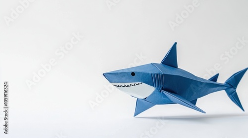 Fototapeta premium Blue Origami Shark on White Background