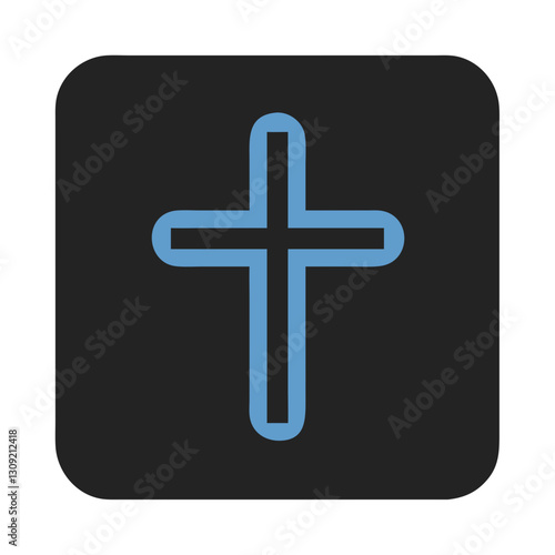 © Kiss, Obraz premium Blue Outline Cross Symbol on Black Square Background for Religious Design Use