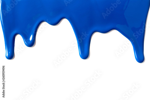 © Anna, Obraz premium Blue paint leaking down white background. Close up.