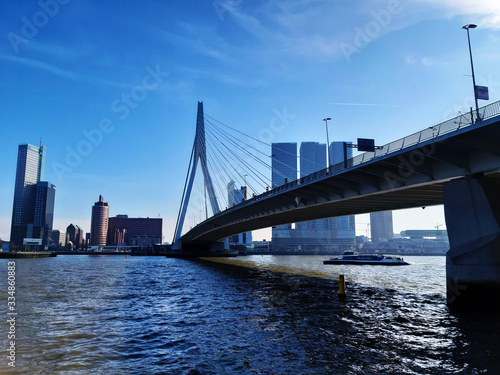 © Alessia, Naklejka premium blue panorama of the Erasmus bridge from Rotterdam on the river