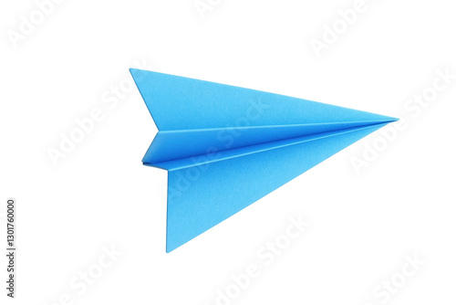 Fototapeta premium Blue paper airplane ready for flight in mid-air, cut out