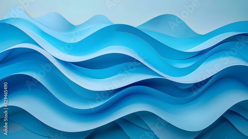 © tfk, Fototapeta premium blue paper waves background. Generative AI.