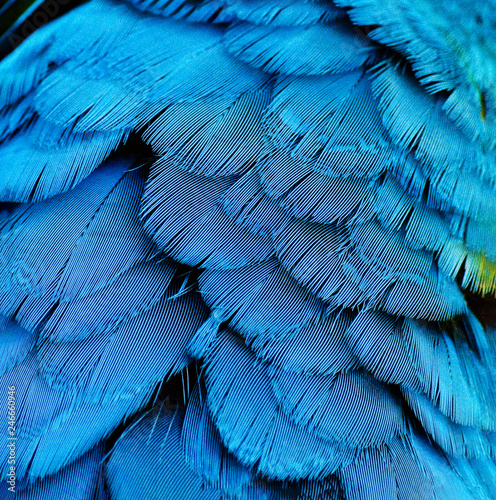 Obraz premium Blue parrot bird feather macaw ara pattern texture close-up