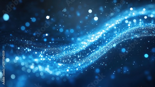 © lestari, Fototapeta premium Blue particle wave abstract background, digital art