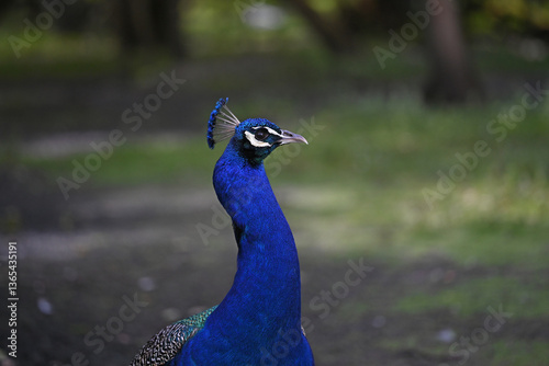 © BENEJAM, Fototapeta premium blue peacock walking in the grass