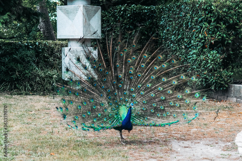 © Elena, Obraz premium Blue peacock with bright colored tail