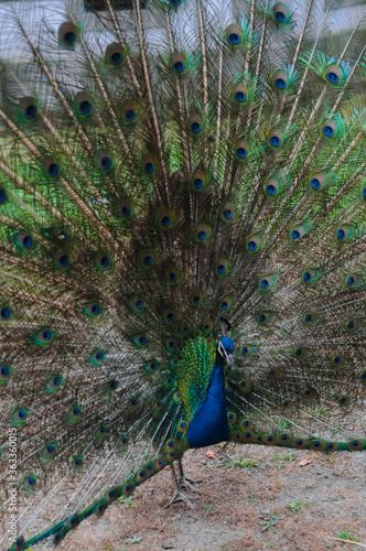 © Elena, Obraz premium Blue peacock with bright colored tail