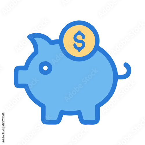Obraz premium Blue piggy bank with dollar coin saving money