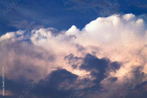 © Laura Сrazy, Obraz premium Blue-pink clouds before a thunder-storm. Background of the sky in dark storm clouds.