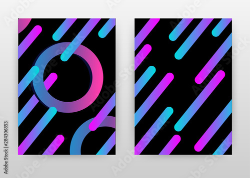 Fototapeta premium Blue pink lines concept design of annual report, brochure, flyer, poster. Round lines on black background vector illustration for flyer, leaflet, poster. Business abstract A4 brochure template.