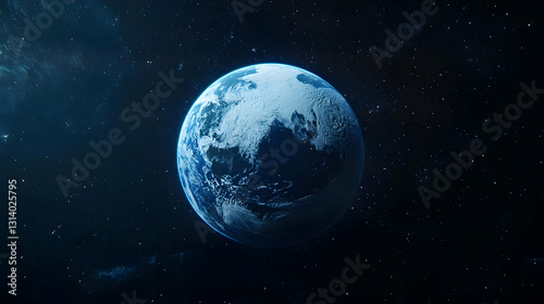 © julio, Obraz premium Blue Pixelated Planet Earth in Deep Space Surrounded By a Myriad of Stars in shades of Blue
